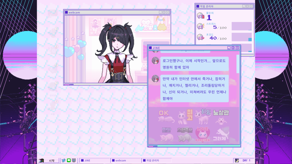 비주얼 노벨 게임이라면 비주얼 노벨처럼 보이게 만드는 어떠한 요소들 – 대화창, 터치 입력을 받는 동작, 캐릭터 등장 연출 등등 – 이 존재한다.