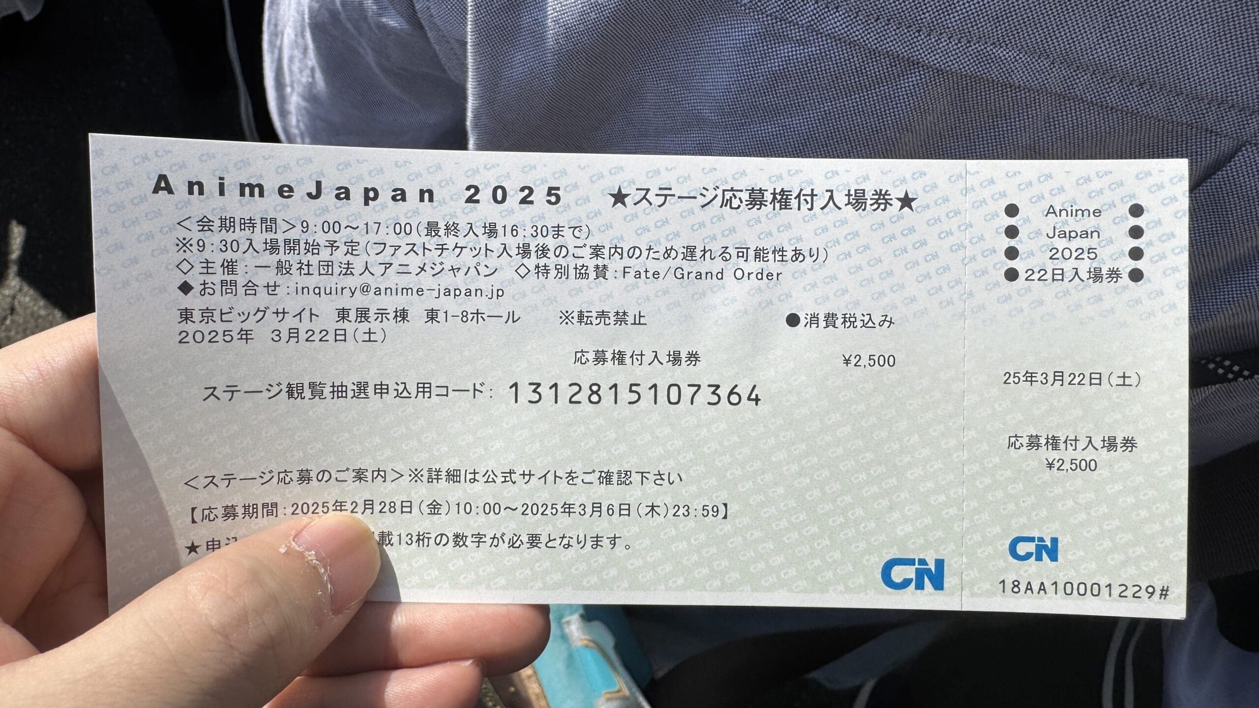 아니메재팬 2025 입장권. 캐릭터라도 그려지면 더 재밌지 않았을까.